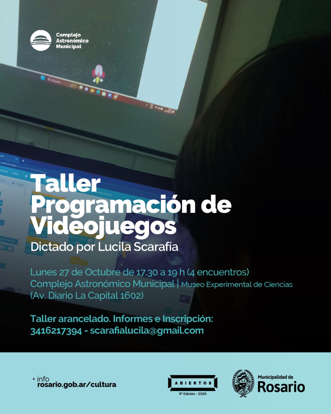 - Lugar: Experimental. Museo de Ciencias en Movimiento. 2º piso edificio Planetario. Complejo Astronómico Municipal. Av. Diario La Capital 1602.