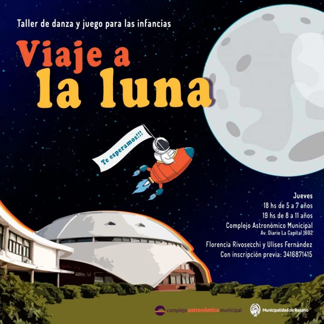 Es un taller lúdico-expresivo sobre la Luna y el cosmos. Una experiencia grupal en la que se vivencia el movimiento, todas sus posibilidades y potencialidades a través del juego. Una invitación para crecer junt@s, alegres e íntegros. Este taller fue seleccionado en la convocatoria del Programa Abiertos edición 2022.